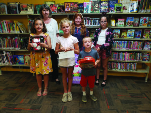 SELKIRK—Haldimand County Public Library, Selkirk Branch, is proud to announce the winners of this year’s Summer Reading Program Draw. Pictured are (front, l-r) Jacklyn Nagel, winner of the soccer ball prize; Paisley Kelleher, winner of $100; Spencer Kelleher, winner of a colouring contest; (second row) Pam Stone, Library Assistant; Bailey Matthews, winner of the Body Board prize; and Adelyne Baldwin, winner of the Marble Run prize. Thanks to all the kids who took the time to read! —Submitted photos.