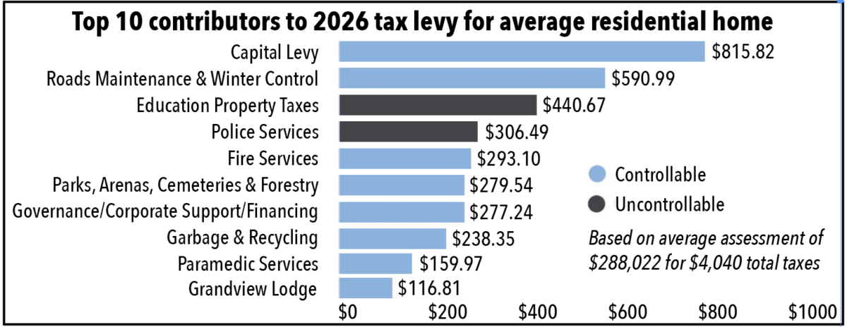 The 2026 budget saw several “uncontrollable increases,” including a $979,000 increase over 2025 in the $8.8 million OPP contract, which equates to a 1.06% impact on the overall levy.