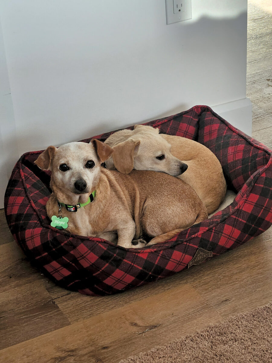 Faith is one of two dogs adopted at the same time by Raymer recently from Guelph-based rescue Safe Paws Animal Rescue of Ontario. Faith’s new sibling is named, rather appropriately, Hope.
