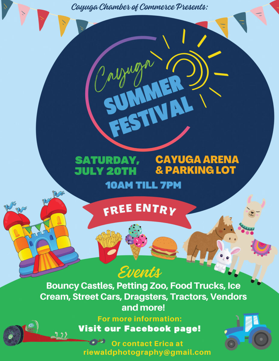 CAYUGA—Looking for fun, affordable family activities to add to your summer to-do list? Be sure to save the dates for July 20-21, 2024 as the Cayuga Chamber of Commerce kicks off a brand new annual tradition, the Cayuga Summer Festival.