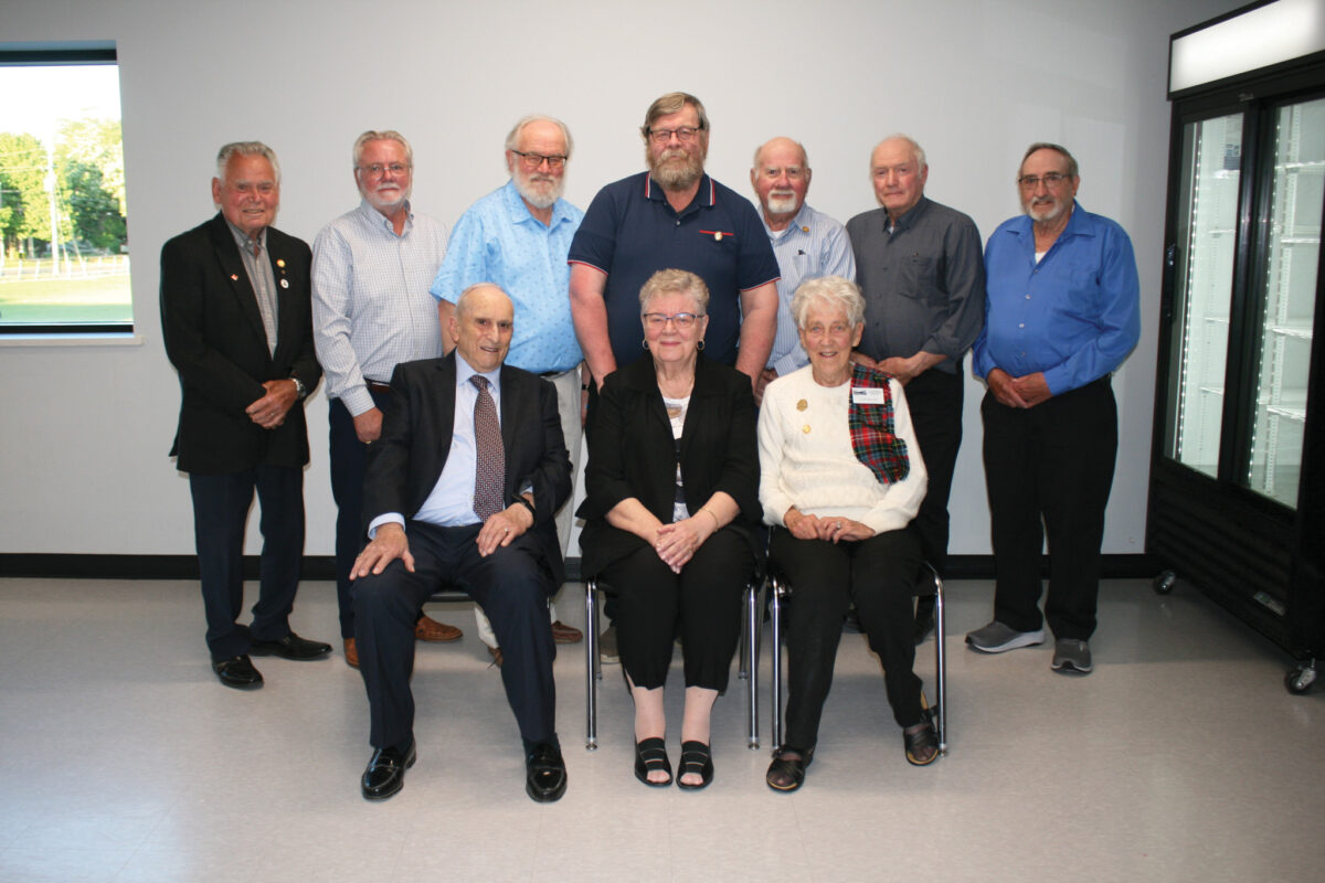 CALEDONIA—Volunteers are at the heart of the Caledonia Fair. During the Caledonia Ag Society Member Appreciation Night, President Jodie Easson said, “Thank you to all of you who have chosen to be members of the Caledonia Ag Society.” Special recognition was given to members who have dedicated 25 or 50 years or more of service. Pictured (l-r) with years of service in brackets: (sitting) Don Forbes (61), Beverly Buist (57), Jean McClung (50), (standing) Don Douglas (64), Mark Peart (54), John Hussack (54), Jim Hussack (54), Don Farrell (53), Bruce Smith (55), John Wickett (62). Absent: Max Cranston (25); Luella Albin (50+), Marjorie Bain (50+), Greg Bates (53), John Douglas (56), Rodney Fox (55), Joan McKee Helmer (52), Allan Hyslop (57), Dennis Stoneman (60), Carl Thompson (50+), David Wickett (56), Ruth Zadanyi (62).