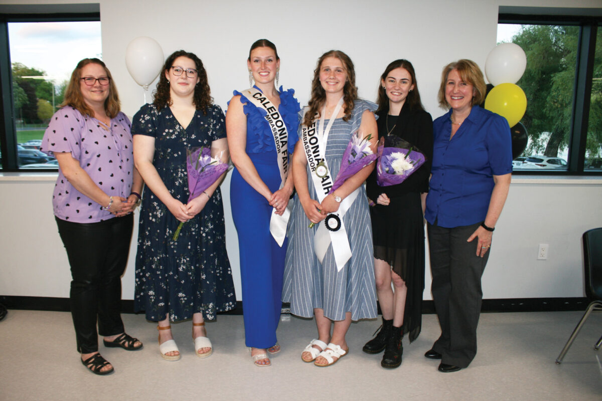 CALEDONIA—Pictured (l-r): Beth Wise; Annice Adams; Jada Dawson; Zoë Tjepkema; Harley Lynn Atkinson; and Jodie Easson, President, Caledonia Ag Society. —Haldimand Press photos by Sheila Phibbs.