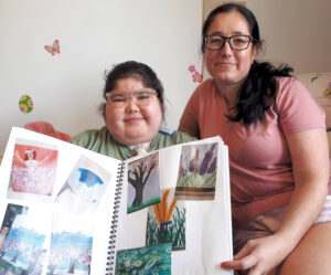 CALEDONIA—15-year-old Tanika sits with her mother, Nicky Davies, with some of her artwork. Tanika has sold some of her artwork, along with handmade soaps, to help give back to the medical organizations who have played a part in her healthcare over the years.