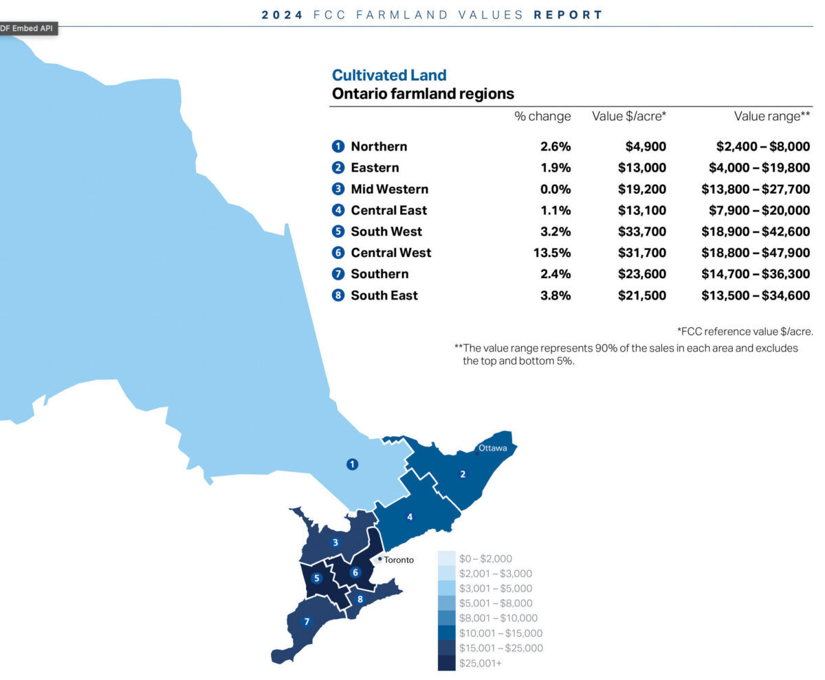 “Overall, the increase in farmland values is a testament to the strong outlook for the demand of agricultural commodities and the high-quality food produced in Canada,” he added.
