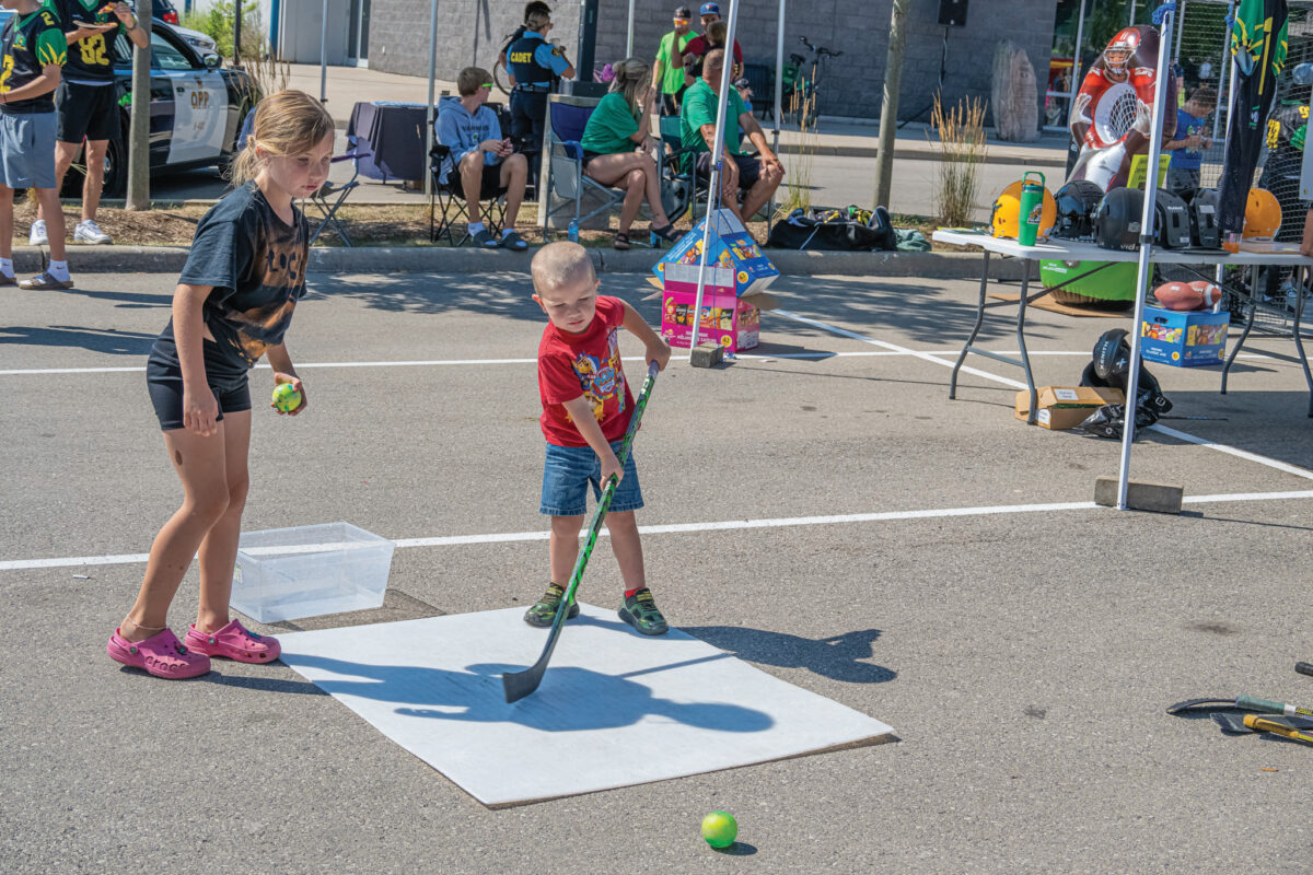 The kids had plenty of options from bouncy castles, a rock climbing wall, petting farm animals, food vendors, hockey, and football.