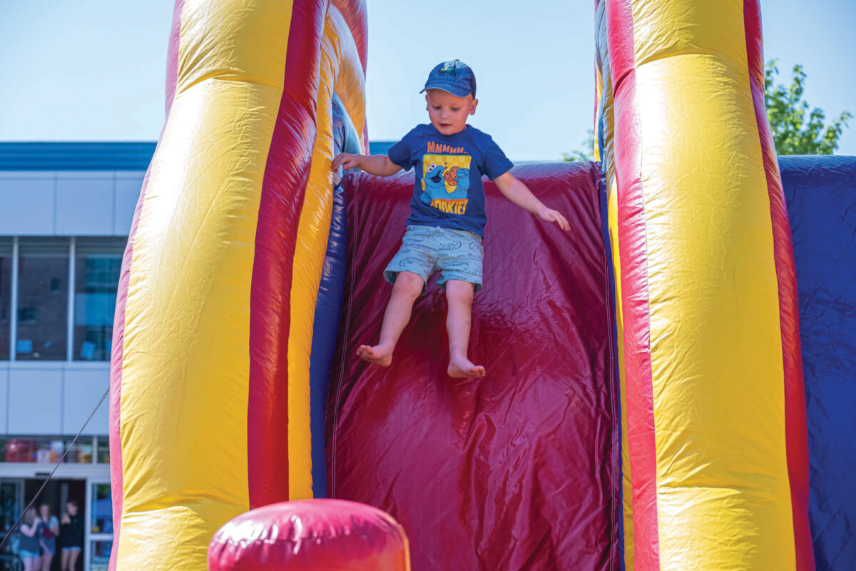 CAYUGA—Dawson Burley, 3, slides down the bouncy castle.