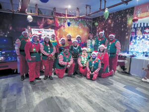 JARVIS—The Jarvis Light Up festivities are in full swing. From weekly searches for Jarvis the Elf to special menus from local restaurants, there is plenty of fun to be had. This past weekend stepped it up a notch with Santa’s Travelling Dance Party. The party visited Jarvis on December 2, 2022 and made its way through Davey Court, Cartier Court, and Karsen Avenue/Leslie Street. The following day the party resumed at the Townsend Community Church parking lot. Above, the many volunteer elves posed for a photo at the Christmas Central Studios. See Jarvis Light Up 2022 on Facebook for more information on upcoming Light Up events and contests, and look for the Light Up song book and map in next week’s Haldimand Press.