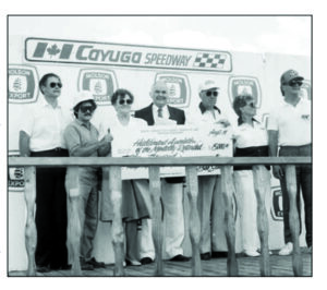 Burger is also well-known for his volunteer efforts, including for Community Living Haldimand. In this photo, Burger (centre) accepts a cheque in support of the construction of CLH’s Jennie Deagle Building in Cayuga in 1989.