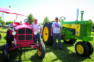SELKIRK—There were five tractors on display ranging from antique to a brand-new model brought by Doughty and Williamson. Above, Jim Heaslip (left) of Jim and Guy’s Hart-Parr Haven, located at Nelles Corners, brought a tractor from his collection: a 1947 Empire that he acquired circa 1964. On the right stands Richard Kater of Katersale Farms in Selkirk with his 1959 John Deere, which he just became the owner of about three months ago.