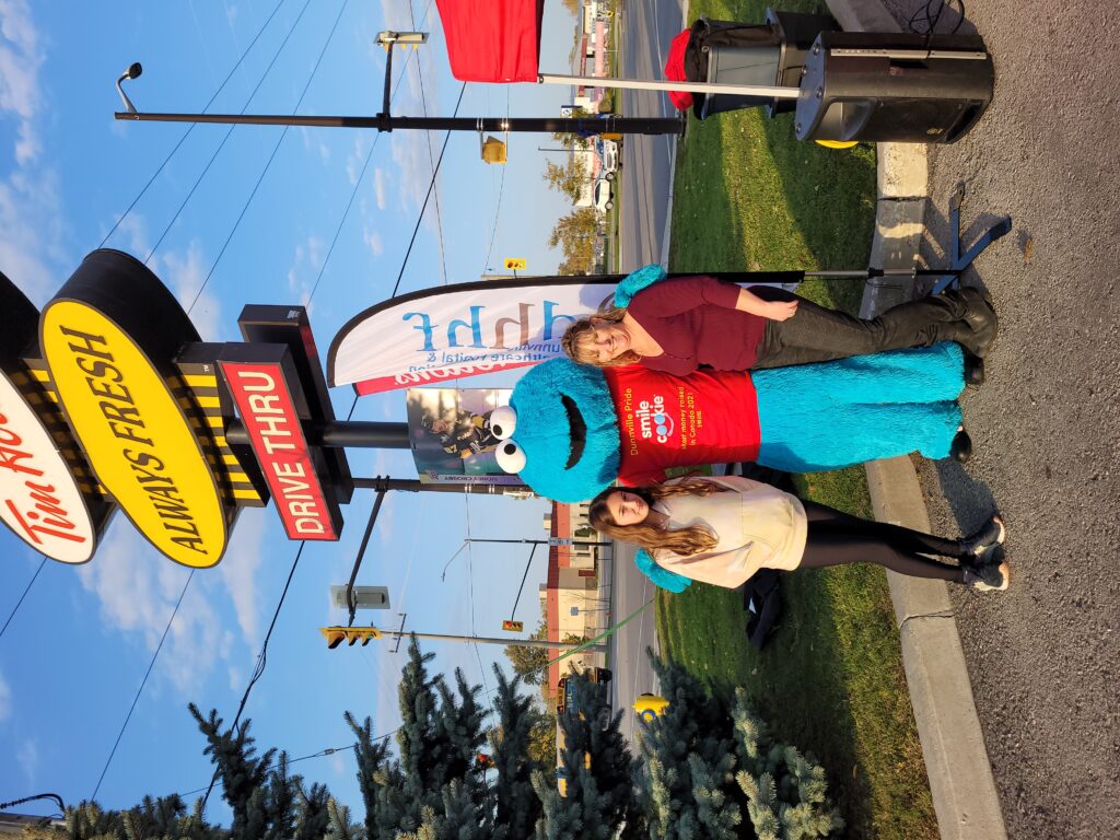 Pictured with Cookie Monster and Penny Banks is Sierra Hart of Dunnville (Haldimand Press photos by Valerie Posthumus).