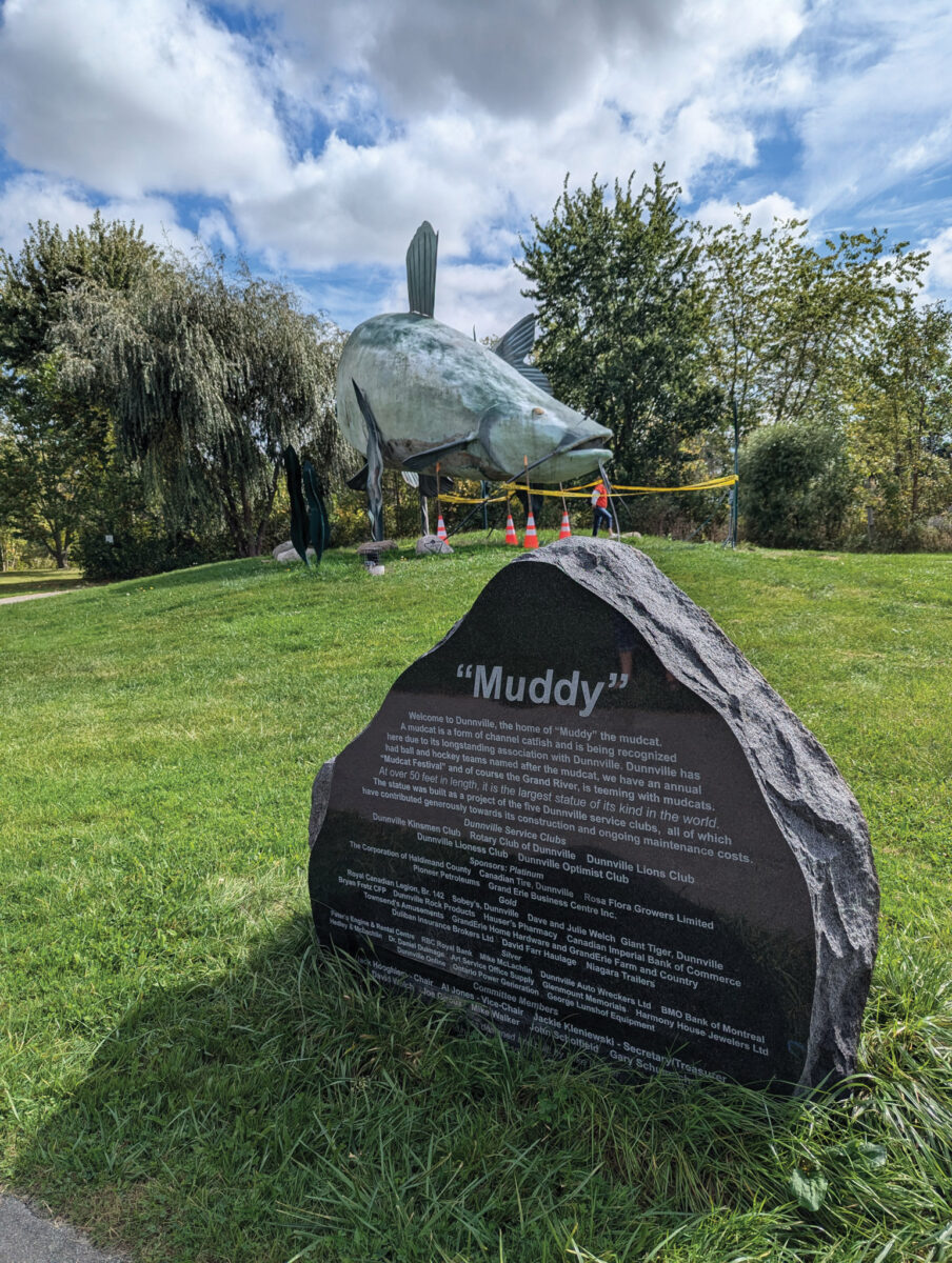 The Rotary Club of Dunnville was one of five area clubs (alongside the Dunnville Kinsmen Club, Dunnville Lions Club, the Dunnville Lioness Club, and Dunnville Optimist Club) that were originally involved in the fundraising to see the Muddy sculpture installed in Centennial Park. The idea for Muddy was first brought forward in 2005 by Jack Hooghein, who had been working on the Mudcat Festival at the time; the following year, a committee was formed to work on bringing the project to fruition, and on November 14, 2009, Muddy was unveiled.