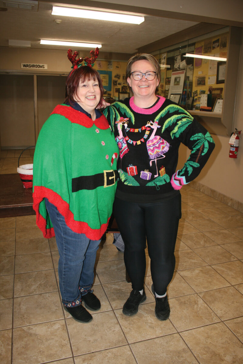 JARVIS—Lion Alicia Buckley (left) and Lion Shannon Bunton were the festive greeters who welcomed guests.