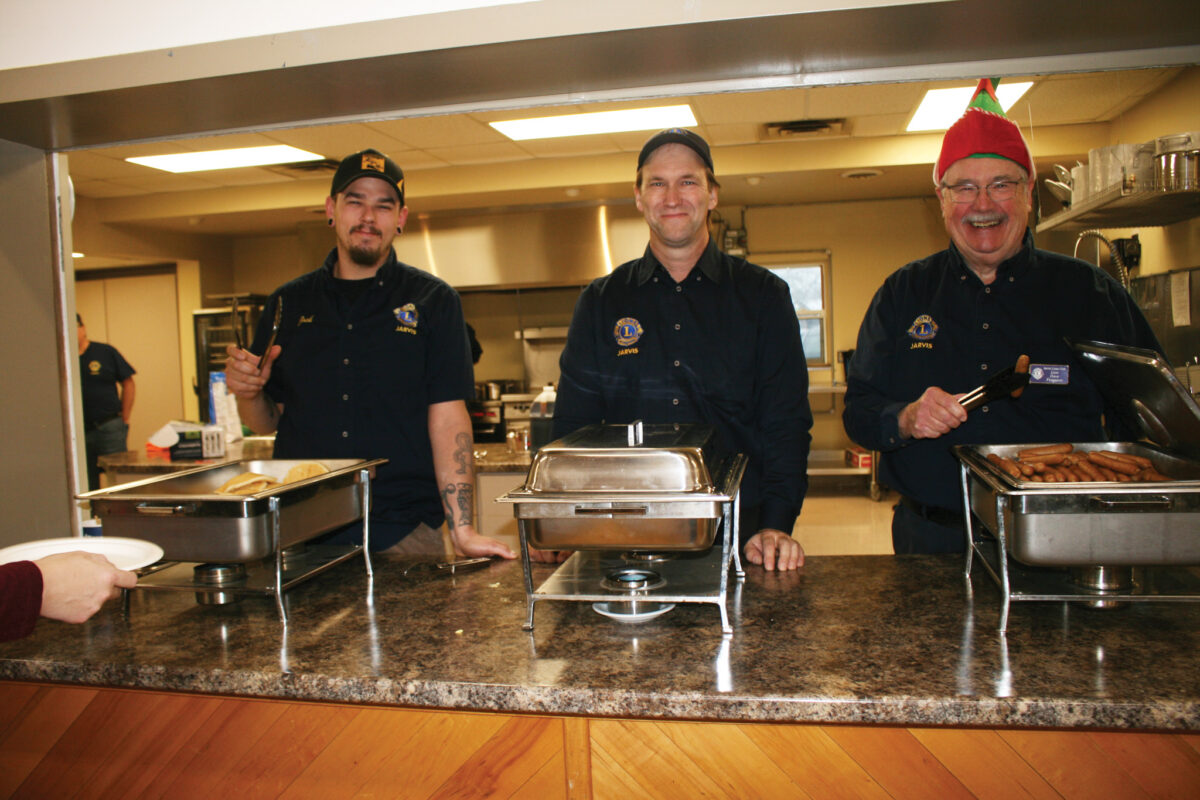 JARVIS—Pictured (l-r): Lions Josh Dick, Darren Fess, and Doug Ferguson served the pancakes, scrambled eggs, and sausage.