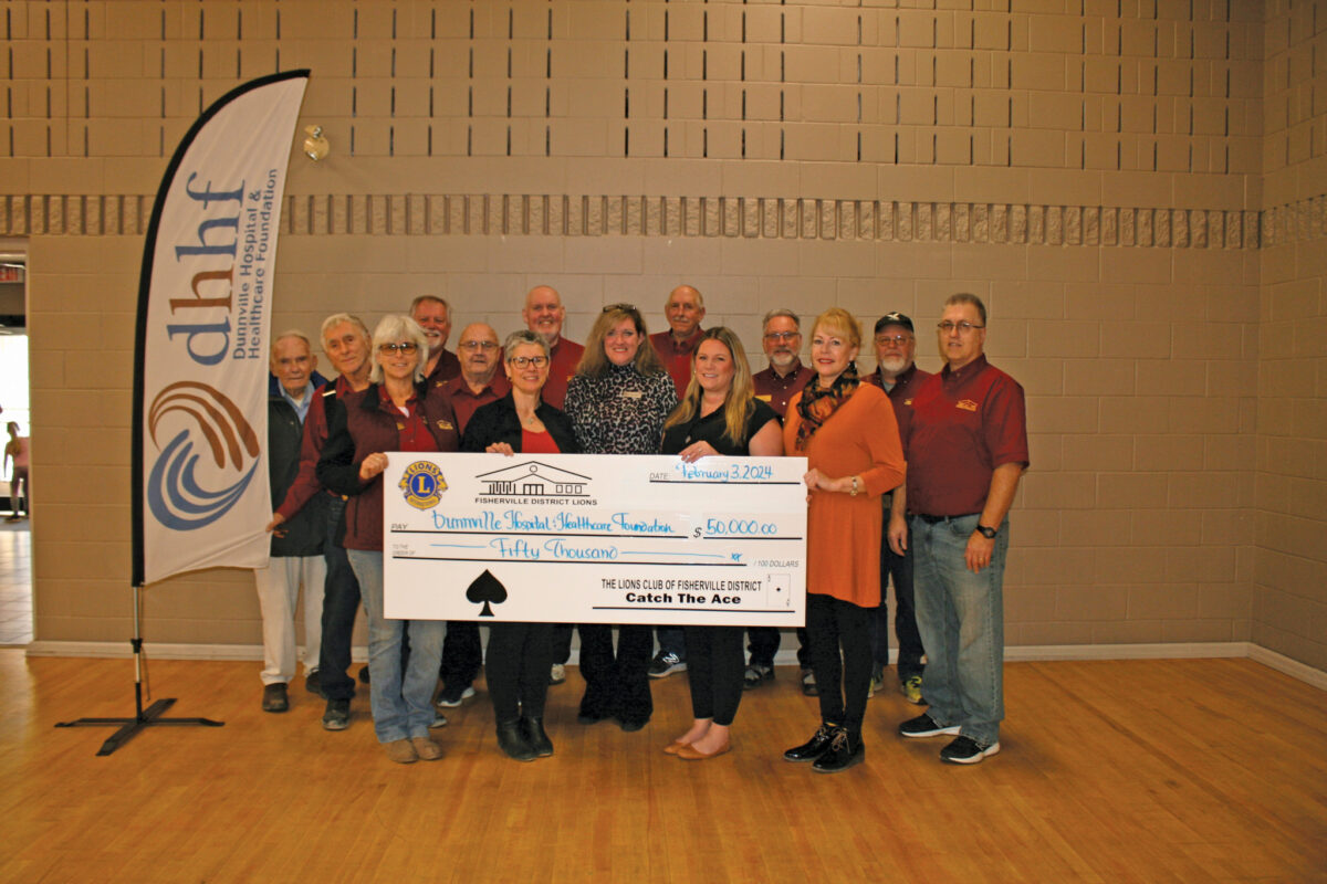 FISHERVILLE—The Fisherville Lions have begun dispersing funds from their first Catch the Ace, which concluded in November 2023. Among the many donations is $50,000 to the Dunnville Hospital and Healthcare Foundation (DHHF), which raises funds for Haldimand War Memorial Hospital (HWMH) and Edgewater Gardens Long Term Care.