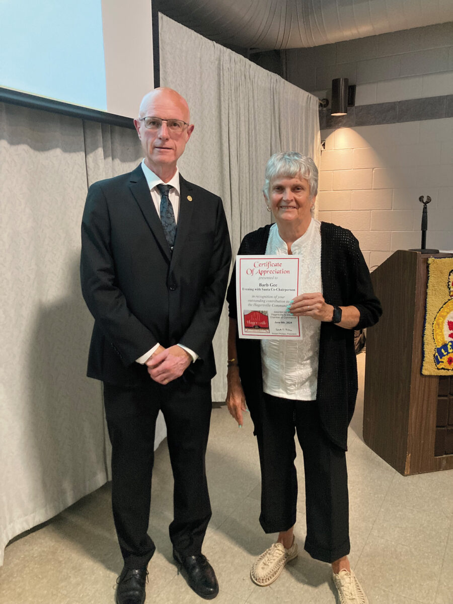 HAGERSVILLE—On Thursday, June 6, 2024, Hagersville Chamber of Commerce celebrated its 12th annual Volunteer Recognition and Awards Night. The event was hosted at the Hagersville Royal Canadian Legion, so it was very fitting to have the veteran banner committee and organizers Brenda Gallant and Beverly Petheram open the evening, which was also the 80-year anniversary of D-Day.