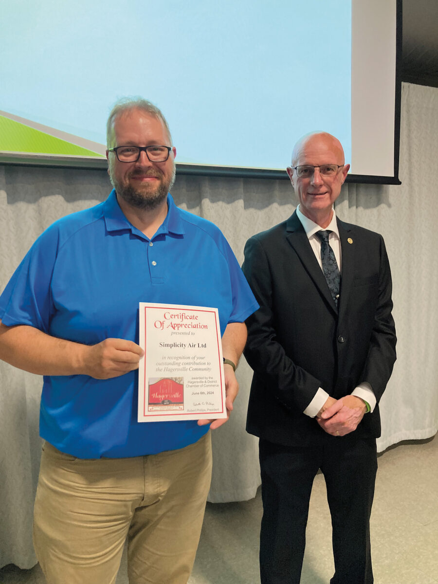 The Chamber presented 43 certificates of appreciation to church, youth, minor sports, community service, and health organizations serving Hagersville. Special recognition was given to Simplicity Air Ltd. for organizing the Twilight Lights (Christmas displays); Carrie Cronk, manager of the flower maintenance in town; Hailey Mattice, who manages the Farmers’ Market; and Tim Otterman, Barb Gee, and Charlie and Barbara Jean Garvie for their efforts on the Hagersville Santa Claus Parade and Evening with Santa.