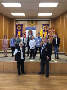 PORT COLBORNE—Contestants at the Effective Speaking contest pose with Chair & Lion Eleanor Arbour, and A-2 Governor Lion Bob Townsend.