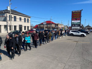 People lined up around the block to purchase tickets – at one point in the day, the line began to double around the block for a second time. —Haldimand Press photo by Mike Renzella.