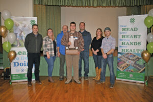 CANFIELD—A new award was introduced at the Haldimand 4-H Association awards ceremony. The Angie Schweyer Memorial Award is presented to an Outstanding Beef Club member who exhibits leadership and proficiency while helping other club members. Angie is remembered as a dedicated and determined volunteer with a willingness to help wherever needed. Her husband, Kevin, and daughter, Christine Pamplin, presented the award along with Beef Club leaders Eugene Tjepkema and Peter Burrill, to Angie’s son, Daniel Schweyer, who completed his final year of 4-H in 2022. Daniel (centre) is pictured with his family and the leaders of the Beef Club (l-r): Peter Burrill, Christine Pamplin, Kevin Schweyer, Daniel Schweyer, Eugene Tjepkema, Sue Passow, and Jamie Heaslip.—Haldimand Press photos by Sheila Phibbs