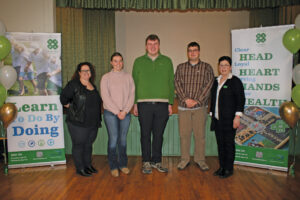 CANFIELD—The Haldimand 4-H Association recognized retiring members during the awards ceremony on January 21. Pictured (l-r): Faith Kirk, 4-H Ontario; Emma Long, Thomas Rickus, Daniel Schweyer, and Marie Stoneman, Haldimand 4-H Association President.