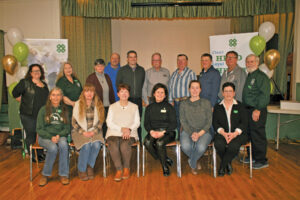 CANFIELD—The Haldimand 4-H Association awards ceremony was an opportunity to recognize volunteers who have earned Provincial Seals from 4-H Ontario for years of service in the last three years. Front (l-r): Isabel Miller (20 years, 2020), Linda Atkinson (5 years, 2022), Cindy Murphy (15 years, 2021), Renee Hedley (20 years, 2020), Jennifer Thompson (5 years, 2021), Marie Stoneman (15 years, 2021). Back (l-r): Faith Kirk, 4-H Ontario; Karen Allen (15 years, 2022), Bette Richards (15 years, 2022), Kevin Schweyer (5 years, 2021), Peter Burrill (1 year, 2020), David Murray (30 years, 2022), Morris Bartlett (35 years, 2020), Allan Hedley (20 years, 2022), Doug Murphy (15 years, 2021), Kim Turnbull (30 years, 2021). Absent: 1 Year – Eugene Tjepkema (2020), Jamie Heaslip (2022), Andrea Iacurti (2022); 5 Years – Laurie Cocking (2020), Peter Cocking (2020), Sue Passow (2020), Glen Phibbs (2021), Angie Schweyer (2021, posthumous), Aaron McQueen (2022), Emily Taminga (2022); 10 Years – Sharon Mitchell (2022), Lisa Rowe (2022); 15 Years – Wendy Strong (2020), Stacey Moyers (2021), Tracy Vandervliet (2022); 20 Years – Heather Reynolds (2021), Kathie Phibbs (2022); 25 Years – Anne McMillan (2021).