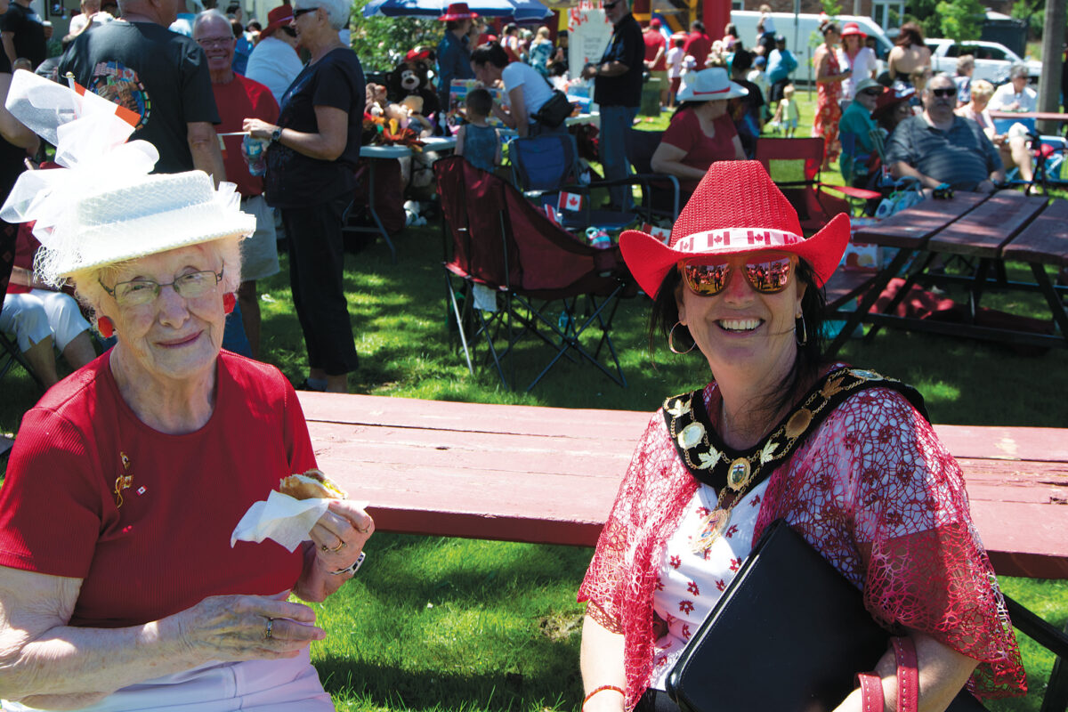 Dunnville’s fun was in Central Park: left, Mary Jane Ings (left) and Diane LeGres were serving up hot dogs at the Legion Branch 142 tent