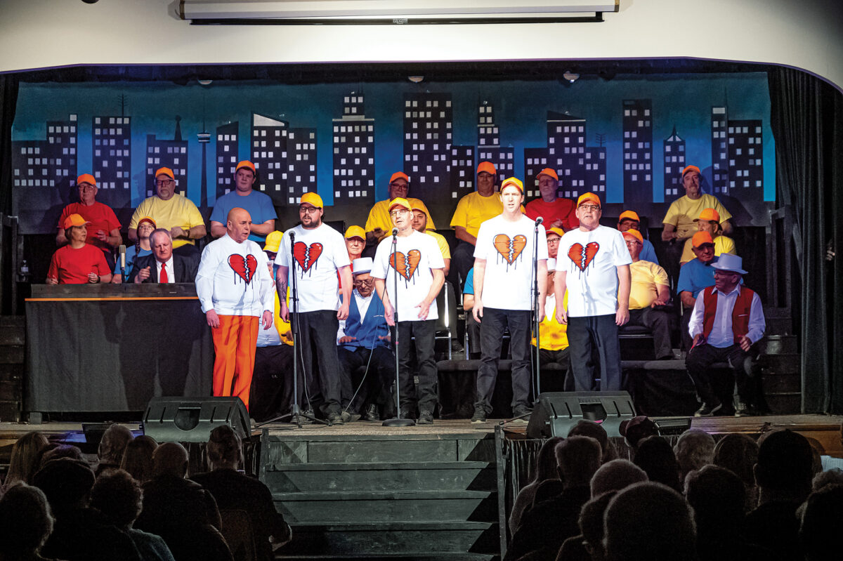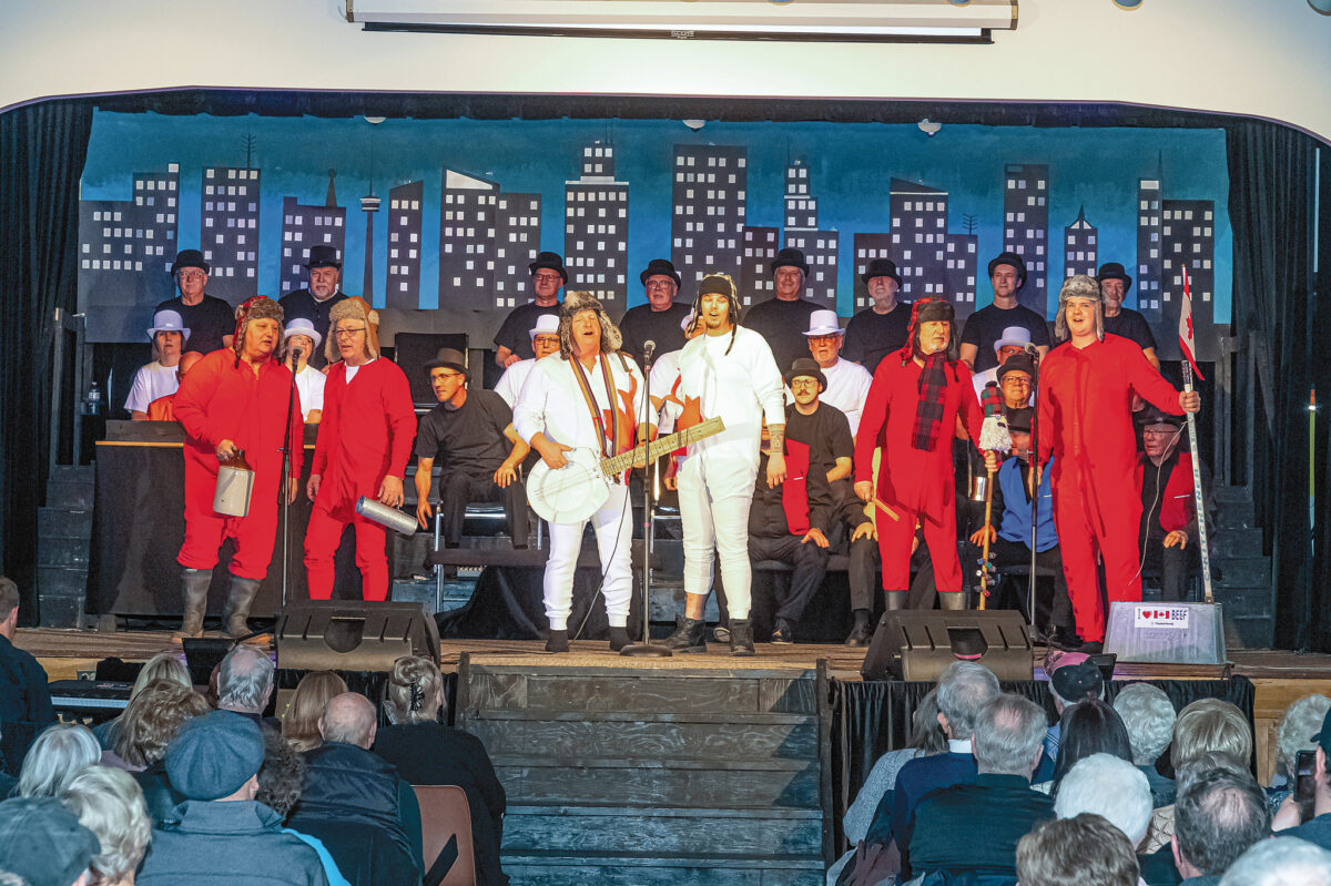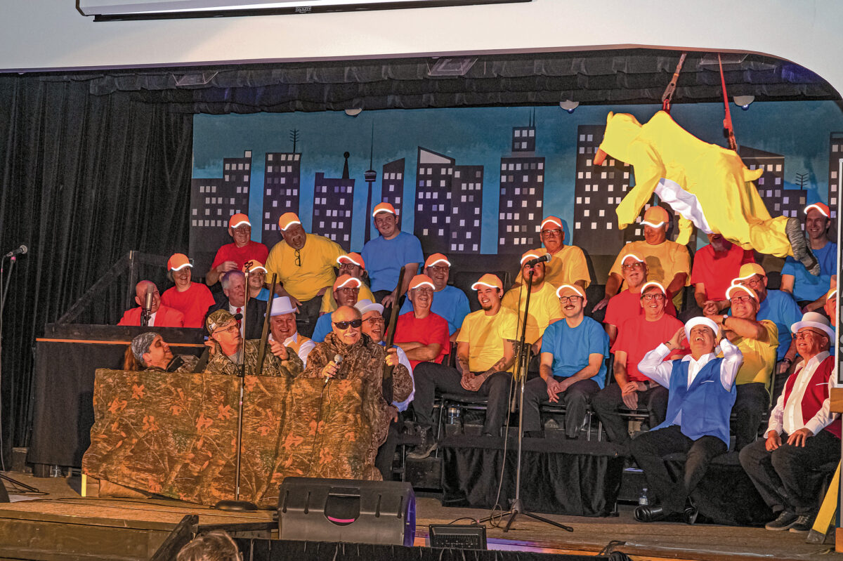 JARVIS—On Thursday, February 29, 2024 approximately 200 people attended opening night of the Jarvis Lions’ 69th annual variety show, titled Late Night. The evening was filled with music and comedic sketches, all preformed by Jarvis Lion members. At the intermission Lions were selling candy and fudge as a fundraiser, with the proceeds going to the completion of the refurbishment of the pavilion in the Jarvis Lions Ball Park. Above, duck hunters clad in camo watched as a bright yellow duck came swooping over the stage, with Lions Jordan Best, Jim Winkworth, and Dennis Craddock up front for this scene.