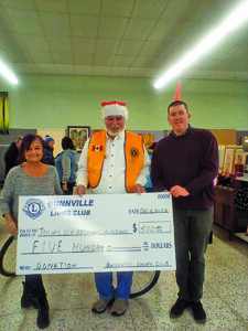 DUNNVILLE—Julia’s Old Fashioned Christmas Charity, a thrift store previously located on Broad Street in Dunnville, celebrated its grand opening at its new location on December 5, 2022. The charity has taken over the old Salvation Army building at the corner of Bridge Street and Queen Street in Dunnville. The significantly larger space is expected to allow the charity to grow and to offer new services in the future. Above, (l-r) owner Julie Marchese helps cut the ribbon alongside MPP Bobbi Ann Brady, Mayor Shelley Ann Bentley, Lion Wray McLean, and Councillor Patrick O’Neill. Below, Marchese accepts a $500 cheque from the Dunnville Lions to support their community endeavours. Shown is Marchese with McLean and O’Neill.