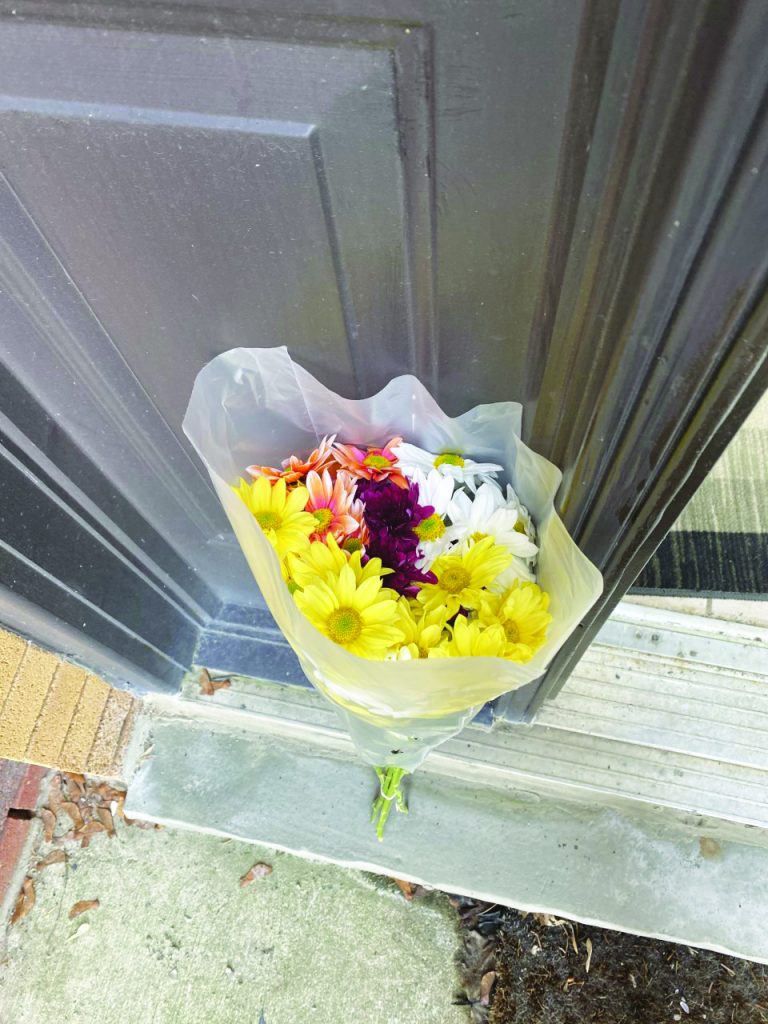 A little note with the flowers read: “Dear friend, here’s a little something to brighten your day. Let’s spread happiness not viruses! Stay safe and be kind to each other. Have a happy and healthy day!”