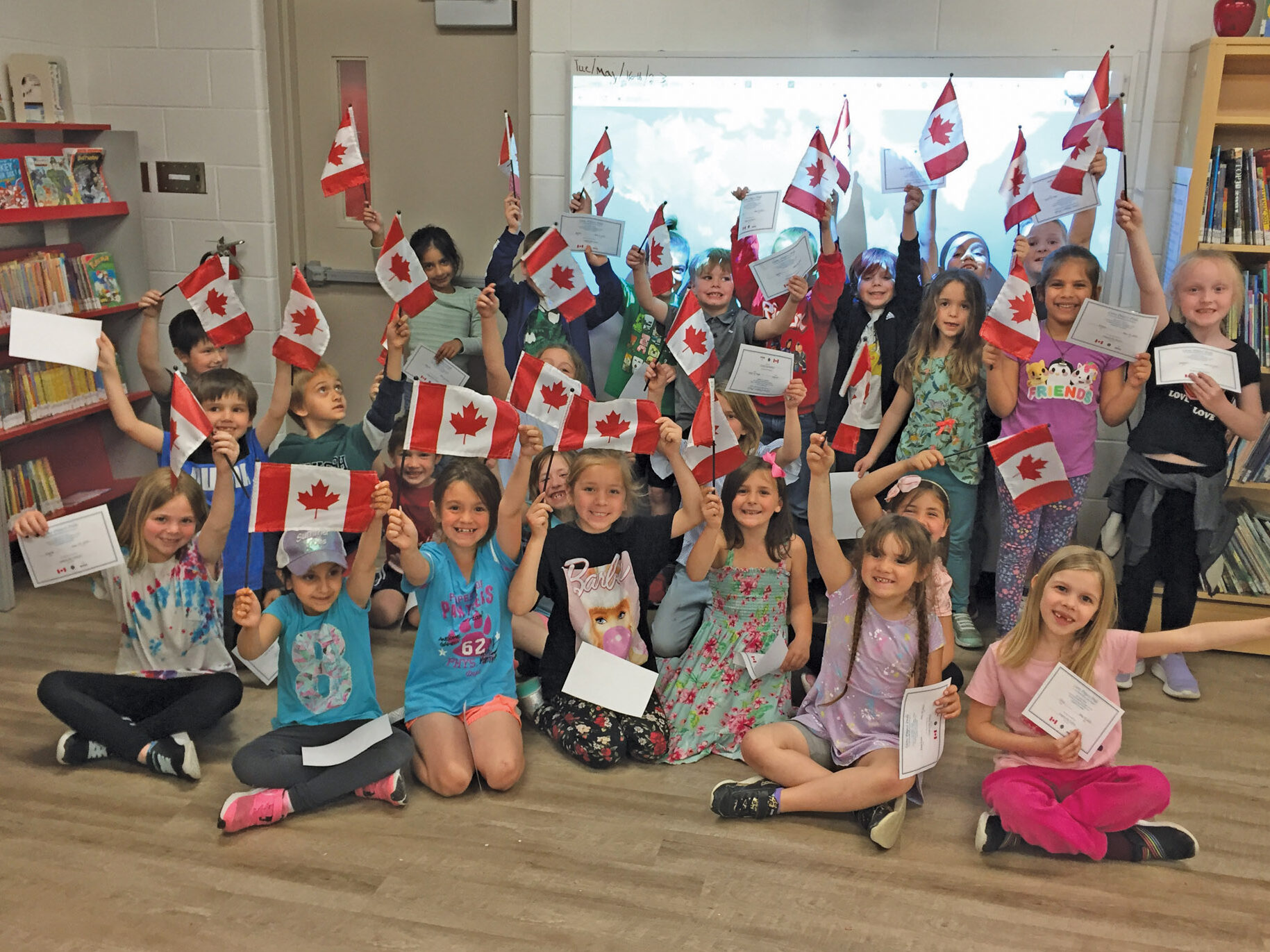 In total, the Harvey’s visited three classrooms, where they spoke at length with students about Canada, where they were born, where they have lived, “They are a chatty bunch… They learned more about our special, diverse nation and saw where they live on a world map. It was enjoyable for us as usual.”