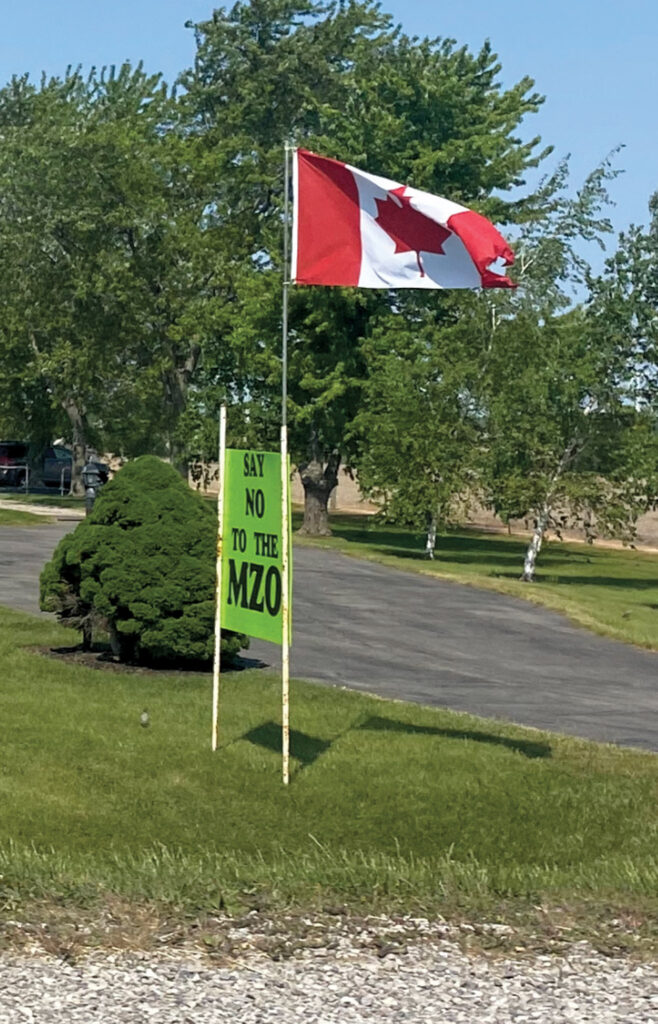The ubiquitous bright green ‘Say no to the community of 40,000’ and ‘Say no to the MZO’ signs were seen throughout Haldimand during last fall’s election, with the latter still on Bentley’s front lawn. She argued that it would be a violation of municipal election guidelines if it was an election sign, and she would not be permitted to keep the sign up. She also noted that she continues to receive requests for MZO signs.