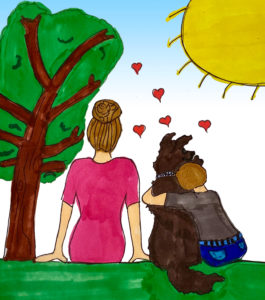 “My mom and I love to take my dog for a walk at the park. I love to spend time with my mom at the park because we laugh and play with Bauer until he gets tired. When he is tired we take him home to calm down. I love my mom!”
