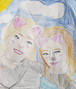 “Here is a picture of my mom and me playing with snapchat filters. We love to spend time together doing tik tok dances, going on hikes, taking pictures and being silly together. I love spending time with my mom!”