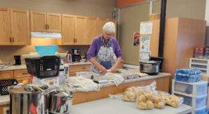 At right is volunteer Jane Oosterhoff preparing for the event. —Submitted photos.