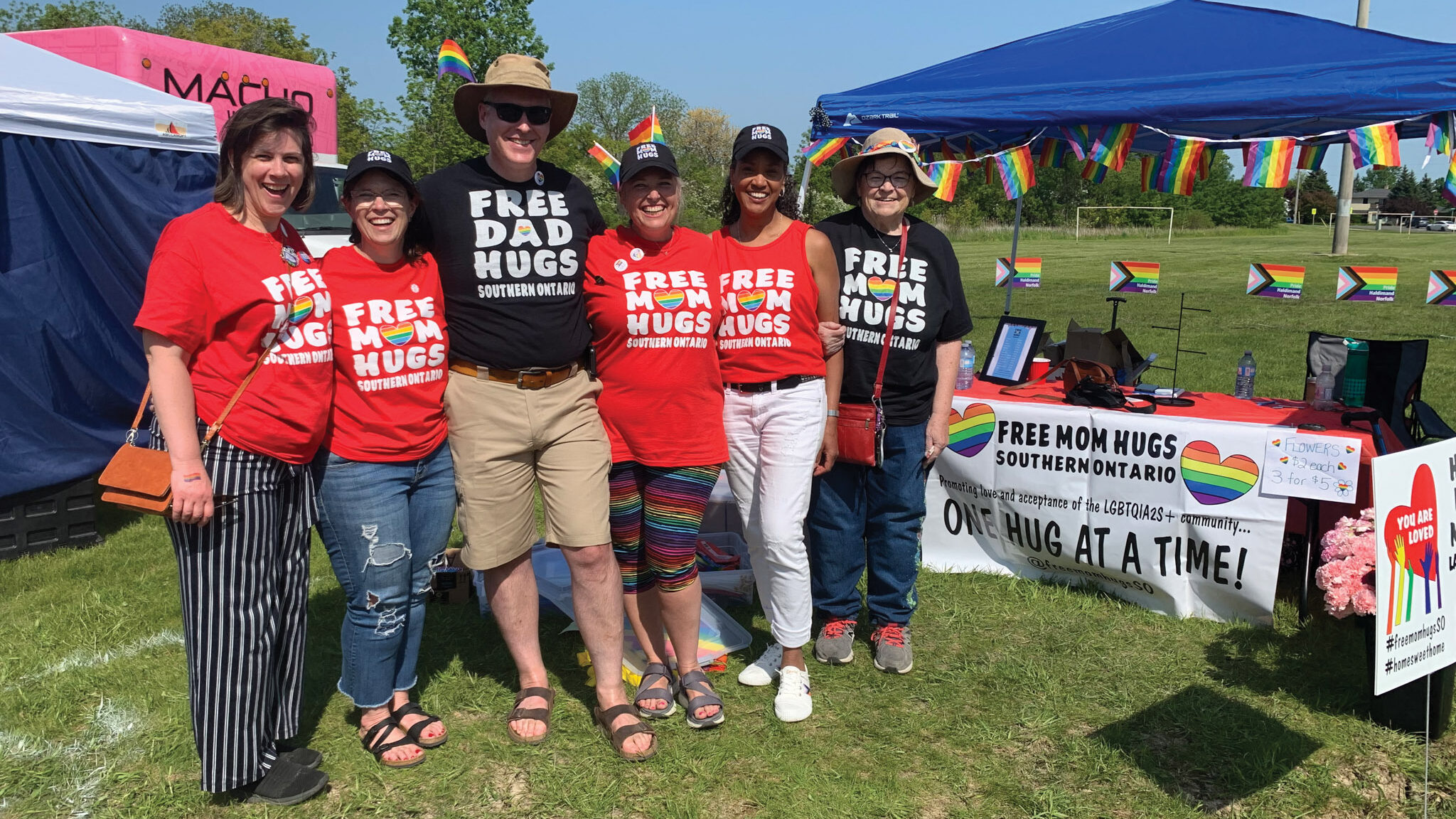 CALEDONIA—Pride Haldimand Norfolk celebrated its sixth year of diversity and inclusion at McKinnon Park in Caledonia on Saturday, May 27, 2023. Eventgoers enjoyed live music, food, a vendor market, a family fun zone, drag makeovers, and more. Pictured above is the Free Mom Hugs group: (l-r) Sherri Brown of Ancaster, Jenn Bard of Waterford, Tim Bard of Waterford, Karol De Stafano of Stoney Creek (founder of Canadian chapter), Mel Orlando of Hamilton, and Sue Wilkens of Dunnville. —Haldimand Press photos by Kerstein Mallon.