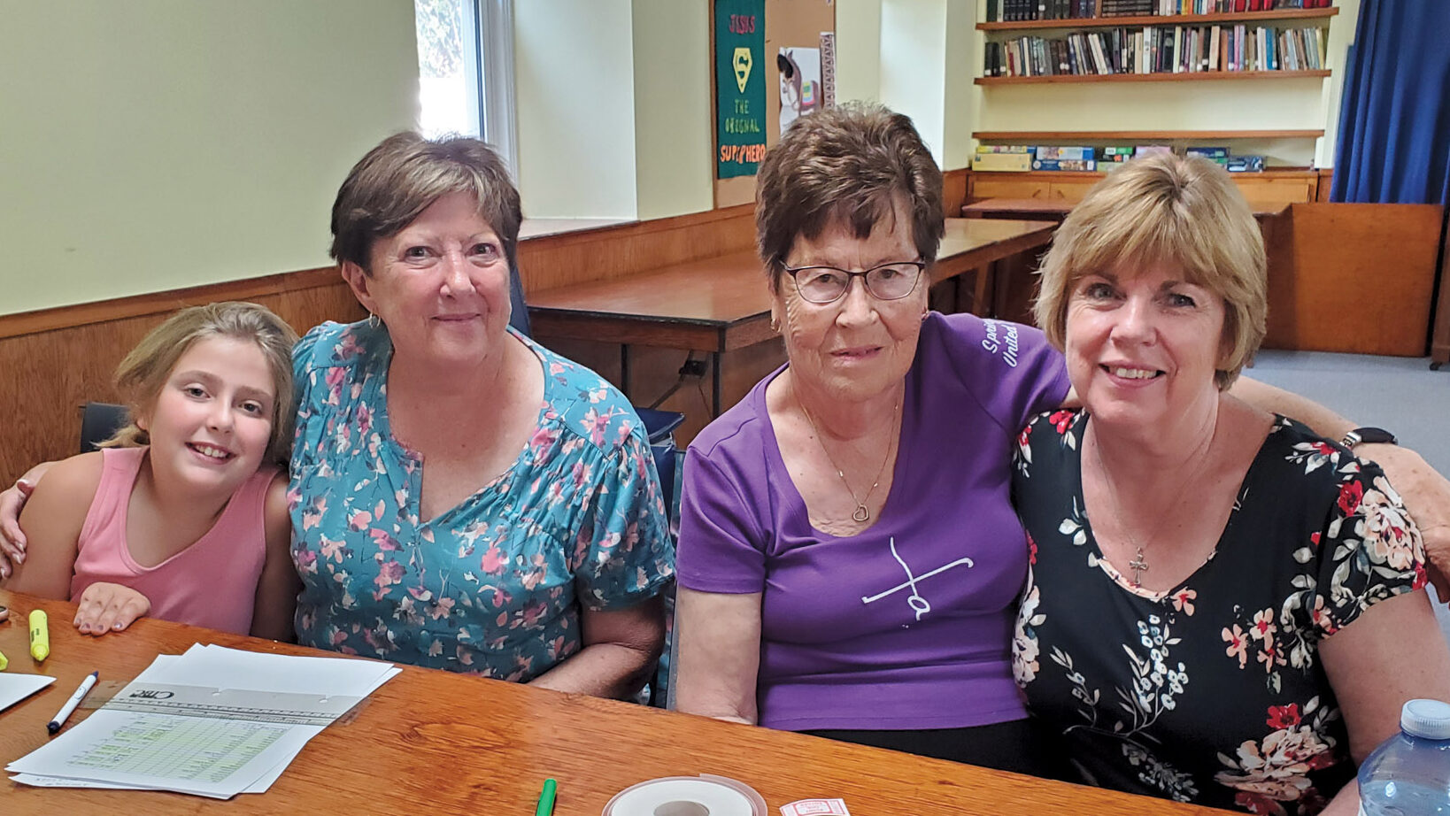 SPRINGVALE—The members of Springvale United Church worked hard to put on their annual Strawberry Supper on June 20, 2023. The work began when they picked all of the strawberries themselves at Austin’s Farm Market and Pick Your Own. The church is celebrating their 150th year, and this is the 30th year for the Strawberry Social. Above, selling tickets are (l-r) Avery, Betty Schweyer, Norma Buckborough, and Reverend Peggy Bartlett. Below, Mike Adamowich (left) and Larry Schweyer pick up dinner.