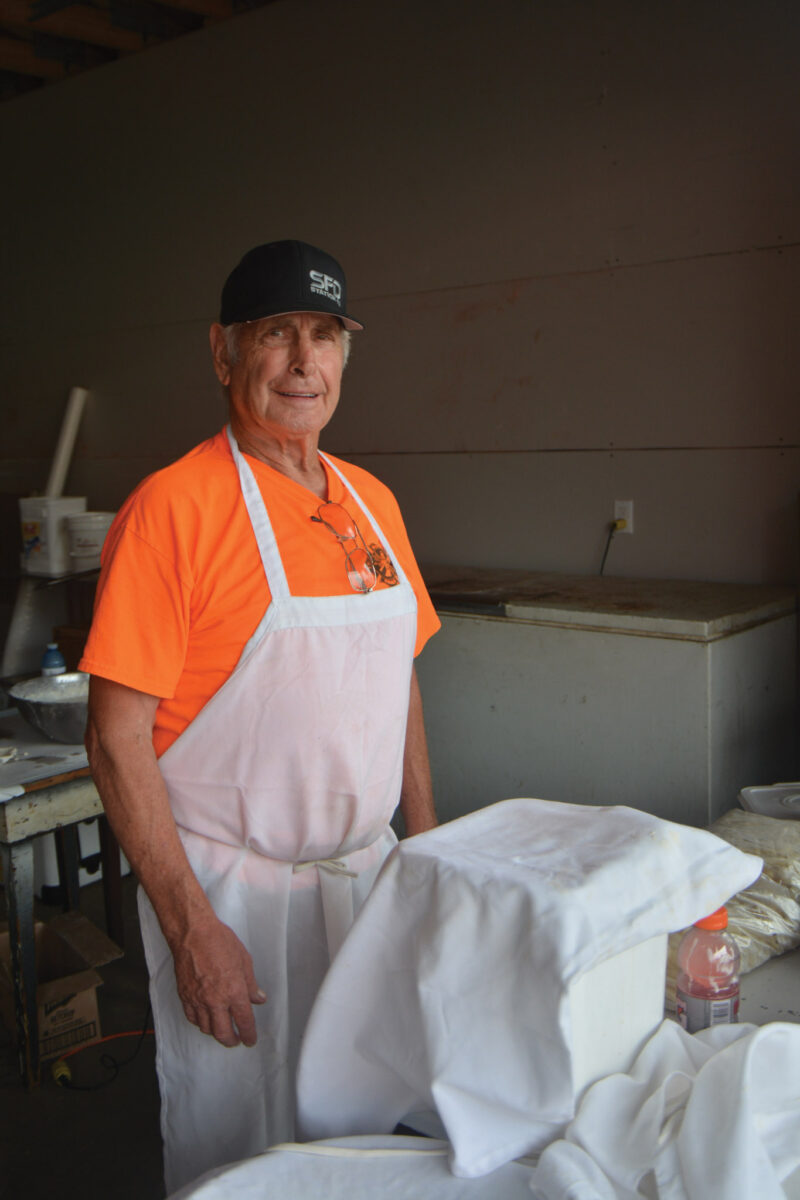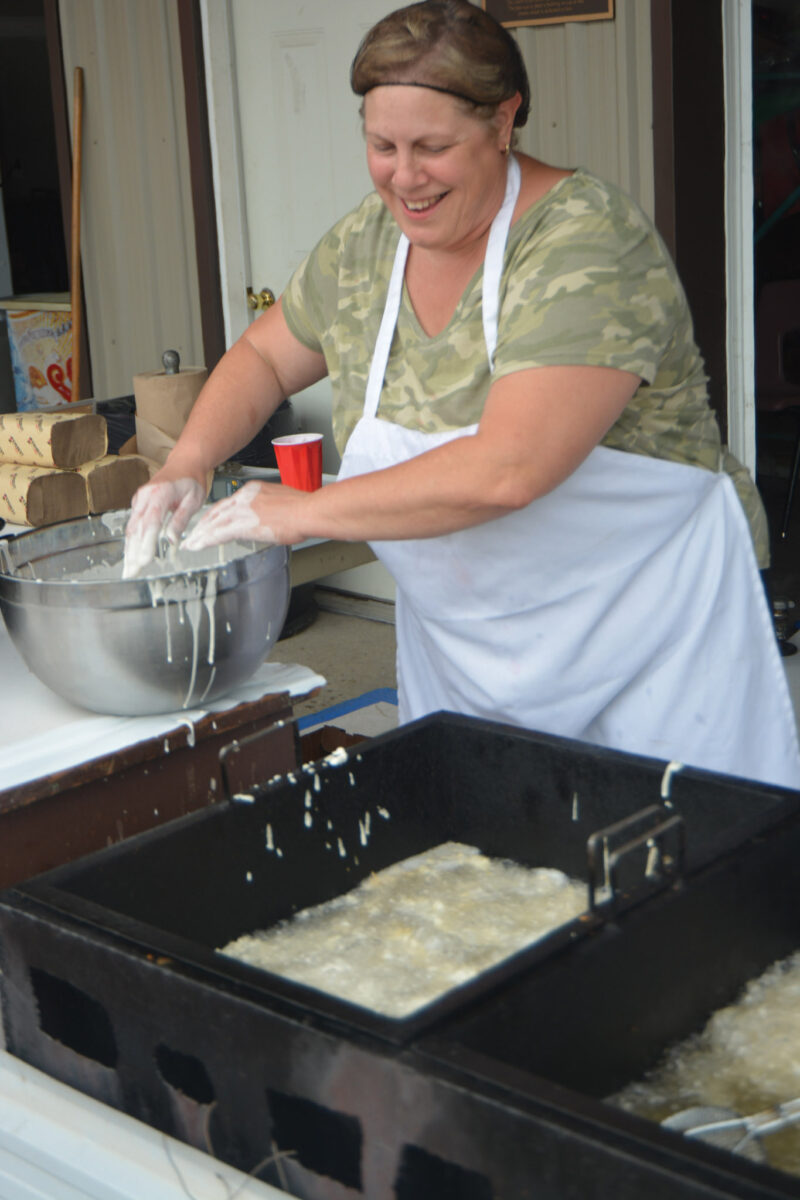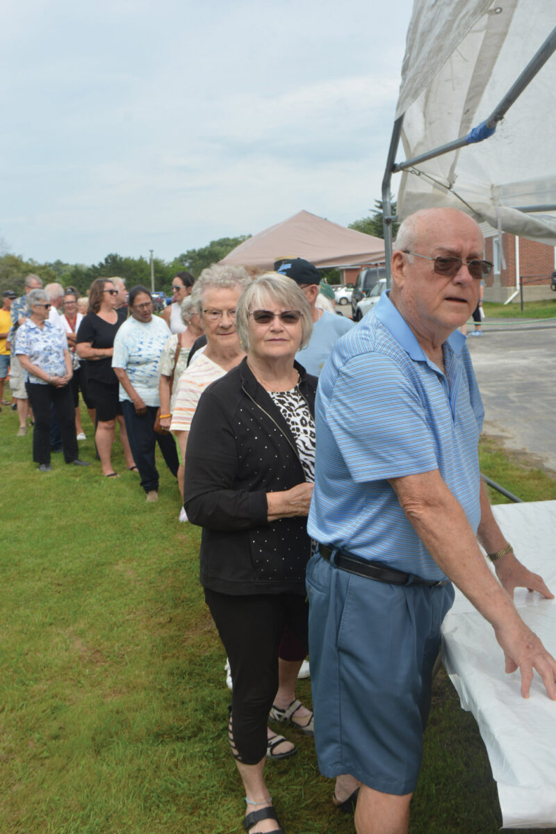 Jason Schweyer, 30-year veteran, was busy over the two large pots of boiling water, cooking the 600 cobs of corn donated by Snyder’s Sweet Corn. Meanwhile, Brian and Toni Cooper were preparing the batter for the fish, while Scott Fess and Dan Ykema watched over the frying process for the 275 pounds of perch and 600 pounds of fries.
