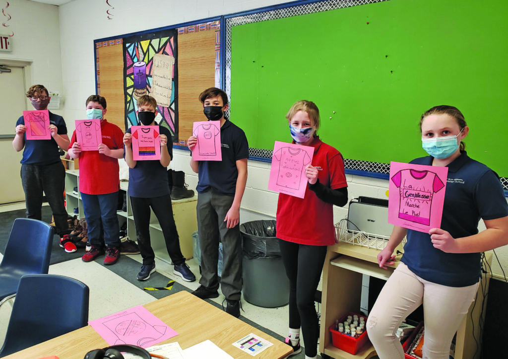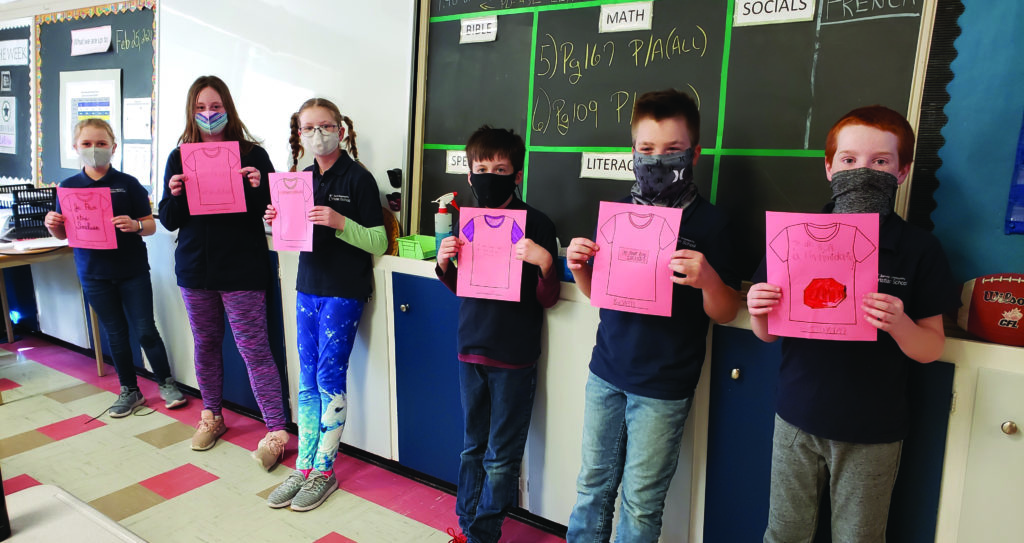 JARVIS—Gavin Stewart, Matthew Petheram, Drew Gibbons, Ryan DeWaard, Kaitlyn Stam, and Sophie VanBenthem proudly display their T-shirt creations.