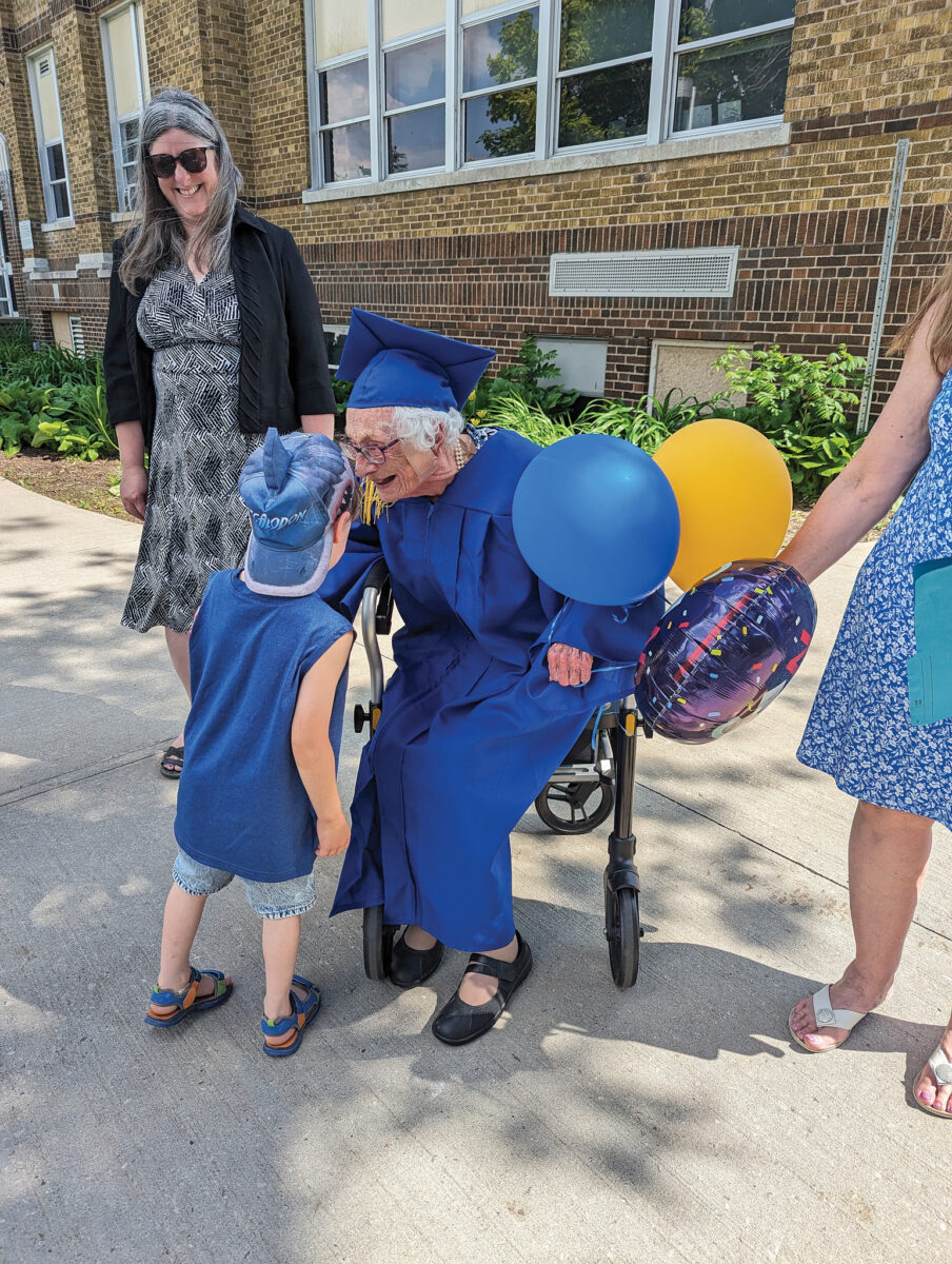 She noted that when students graduate, it’s common to wish them the best for their future, but in Young’s case, “Your future is here; you’re surrounded by your children, your grandchildren, your great-grandchildren.”