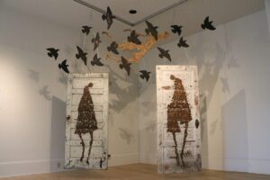HALDIMAND—BHNCDSB hosted an art show that saw students colloborate with Indigenous artists. At right, A Silent Sky by artist Michael Barber on display at the 2022 Indigenous Art Exhibition “Rebuild, Restore, Renew Together”. Students worked on part of the piece with Michael, including painting the birds and scuffing up the doors. —Submitted photos.