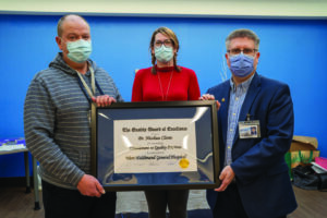 (l-r) Dr. Nic Cloete, award winner; Jennifer Edwards, Director of Quality, Clinical Practice and Infection Prevention and Control; and Todd Stepanuik, President & CEO.