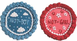 They explained, “With the rising popularity of gender reveal cakes, I decided to make two non-edible cake sculptures (shown above) to address the ideas surrounding gender and playing with the permanence of gender, that sex and gender are two separate things. Gender being something that we grow into, not something we are assigned at birth. Rejecting this western colonial notion that gender is strictly binary and so heavily informs how one navigates the world.”